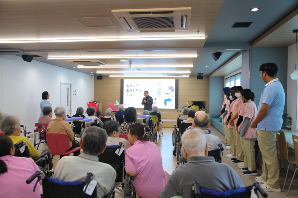 今回の訪問は、利用者様にとって健康への意識を高め、日々の生活に新たな活力を与える素晴らしい機会となりました。生島ヒロシ様には、心より感謝申し上げます。